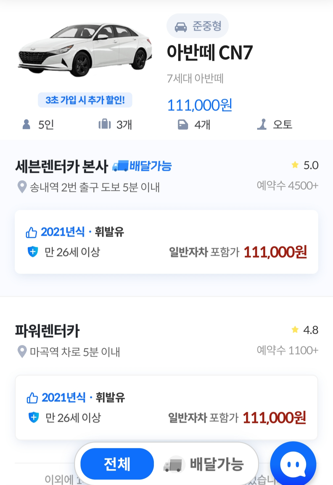예 : 롯데렌터카,akj렌터카, 스타렌트카 등