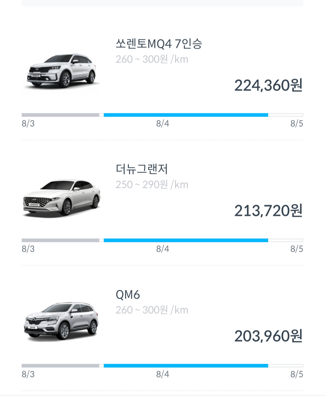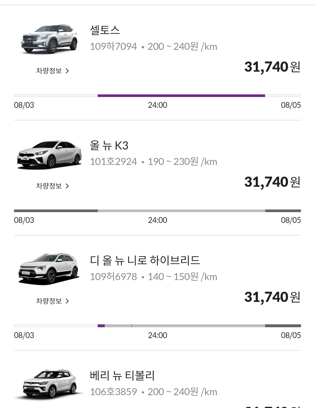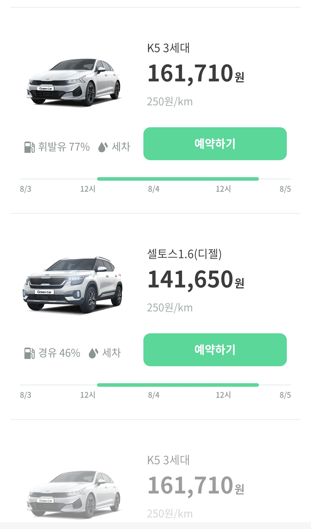 가격은 차량, 쿠폰 할인에 따라 변동이 될 수는 있지만, 일반적으로 쏘카>그린카 > 피플카 순으로 피플카가 가장 저렴했다.